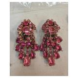 Pink Rhinestone Vintage Clip-On Chandelier Earring |