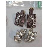 Two Pairs of Vintage Rhinestone Earrings, Clip-On |