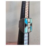 Sterling Silver Ring with Geometric Inlay Design |