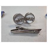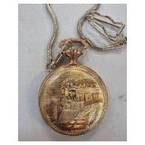 Gold-Tone Pocket Watch with Train Motif and Chain |
