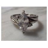 Solitaire-Style Ring with Clear Stone and Paved Ba |