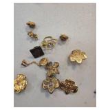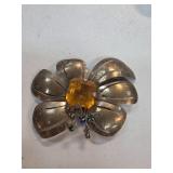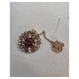 Gold-Toned Floral Brooch With Center Gemstone Acce |