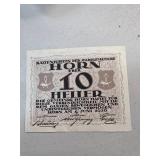1920 Austrian Horn 10 Heller Notgeld Currency Note |