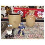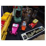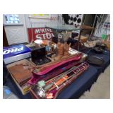 Welcome Folks: This week is the Monthly Antique and Collectable Auction 25 Walking Liberty Half dollars, 25 Silver Kennedy Half dollars, 5 Rolls Silver Washington quarters, 4 rolls Mercury Dimes, 4 Rolls silver Roosevelt dimes, 2 Silver Rounds, sterling compote, Costume Jewelry, Circus Strong Man Ring, Cigarette Lighters, Neon Hexagon Clock 2 tube runs and 1 tube lights, round oak table, Larkin oak Drop Front Writing Desk, mahogany rocker, 4' Advertising SailBoat, 2 door mahagony Bookcase, 8' Counter 4 doors 1 drawer, 8' Pennzoil sign, 50+ pcs RRPCo Pottery, 1 drawer table, Illinois 2 Door oak Ice Box, oak 2 pc Stepback Cupboard spoon carved, 7-UP Cooler, Philco Floor Radio, 8'McKinley Stone sign ptd, LIft Top Blanket Chest old red paint, mahogany 4 stack Macey Barrister Bookcase, Waterfall Chest and Dresser w/mirror, 6 drawer Depression Chest, 2 pc Cherry Corner Cupboard Willet, lighted Curio Cabinet, childs rocker, 7 Paper Mache" Mardis Grau Heads, Summit Tires embossed sign, wicker table, wicker Table Lamp, Bud Light neon sign, Atlantic Coast Line sine ptd, 3 gallon crock, Yuengling Black & Tan neon, Singer FeatherLite Sewing Machine w/case, photo album, Tin Type Pictures,37 pcs Art Glass-Rosebowls-Pitcher w/4 glasses - vases etc, Carnival Bowl Stag, Dixie Boy Flashlight Crackers 7 packs, Willet 2pc Hutch Cherry, Quarter Sawn Oak Dresser w/mirror, 2 door walnut server, 2-2drawer 2 door oak washstands,Cigar Lighter, Post Cards, cast iron Horse& Wagon, mammy Cookie Jar, Greyhound Bus,microphones, civil Defense hat, coffee grinder, El Camino badges, clay marbles, cast iron Lawn Jockey, Wright & Bridgeford waffle maker, cast iron Touring car, barn lanterns, Witch Lantern w/box,several boxes of Hatchets, Home Depot Pedal Car, Longaberger Baskets, fishing reels, Mail Pouch thermometer, Whitetail head Mount w/mirror, porcelain "Emergency First Aid " sign, RR Crossing sign, Top Hat, 30+ pcs cast iron Griswold-Wagner etc, RR lanterns, RCA radio, lincense plates, 4 Lightning Rods w/balls, large magnifying glass, 2 - The New Reynolds Roofing signs, Interstate Battery sign, 5 street lights, HO Trains, Tonka Car Hauler w/3 Rancheros, Buddy L & Nylint cars, Tonka Dump Truck w/blade, The Sanitary Freezer, Sloane Maternity Milk beaker, Ertl gulf Tanker, Coke crate,doll buggy, Bethelem Steel Wire size Chart, wash boarsd, Bachman G Scale cars, Waterford Crystal, Buddy L & Tonka dump Trucks, Tonka Snorkel, Arctic Cat Bibs, Bee Hive Oil Filter, childs 3 pc patio set, blomold candles, Willet Cherry 2 pc Corner Cabinet, silver plate, Lionel Train and Building, Limoges China, NASCAR Die Cast Cars, 7 rows misc, 17 lighted Advertising signs, 7 concrete planters, concrete goose and frog, 5 boxes leg hold traps, ammo boxes, pitch forks, axes, hay knife, RR Light, trailer full of Road signs, trailer full of bottles, wood crates, 2 large concrete dogs, Kissing Dutch Boy & Girl, 5 drawer oak Highboy, Willet Cherry table w/2 chairs, sofa table, oak parlor table, Knee Hole /desk, Industrial Sewing Machine cast iron, 2 pc oak Kitchen Cabinet w/porc top and flour bin, motorcycle parts n. |