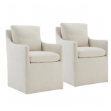 (161) CHITA Dining Arm Chair with Caster Wheels for Kitchen Fabric Upholstered Dining Room Chair, Linen