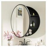 (59) Keonjinn 28 x 28 Inch Round Black Mirror Medicine Cabinet Wall Mounted, Circular Modern Medicine Cabinet with Mirror, Black Framed Medicine Cabinets with Mirror, Vanity Bathroom Mirrors with Storage