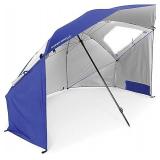 Best Choice Products 10ft Solar Polyester LED Lighted Patio Umbrella w/Tilt Adjustment and UV-Resistant Fabric - Beige