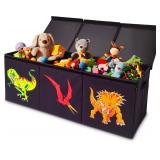 KLOWADOMA Extra Large Collapsible Dino Toy Box with Lids for Kids - Toy Storage Organizer, Chest, and Bin in Living Room, Playroom or Kids Room Organization-3Pack