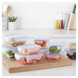 - Glass food storage containers for lunches, leftovers, pantry items, and more