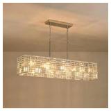 HUOKU Luz 8-Light Long Rectangular Crystal Chandelier Chrome Finish Modern Mosaic Crystal Chandelier for Dining Rooms