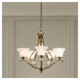 KICHLER Dover 24 in. 5-Light Antique Brass Transitional Shaded Bell Chandelier for Dining Room
