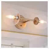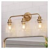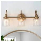 Uolfin Modern Bell Brass Gold Bathroom Vanity Light 3-Light Dome Powder Room Wall Sconce Light with Seeded Glass Shades