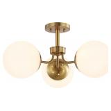 JONATHAN Y Olivier 23.5 in. 3-Light Brass Gold Bohemian Farmhouse Iron/Frosted Glass LED Semi Flush Mount, White