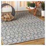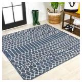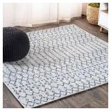 JONATHAN Y Ourika Moroccan Light Gray/Navy 3 ft. 11 in. x 6 ft. Geometric Textured Weave Indoor/Outdoor Area Rug