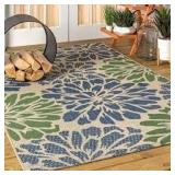 JONATHAN Y Zinnia Modern Floral Navy/Green 3 ft. 11 in. x 6 ft. Textured Weave Indoor/Outdoor Area Rug