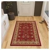 Ottomanson Ottohome Collection Non-Slip Rubberback Oriental Design 3x5 Indoor Area Rug, 3 ft. 3 in. x 5 ft., Dark Red
