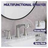 LORDEAR 8 in. Widespread Double Handle Pull Out Bathroom Sink Faucet with Drain Assembly in Brushed Nickel