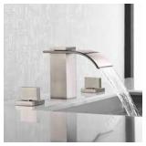 PERLIRIA INC 3-Handle Deck Mount Roman Tub Faucet with Hand Shower, Wide Waterfall Spout 5 Hole Shower Faucet in Brushed Nickel
