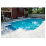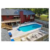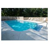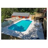 POOL HIGHLIGHTS 18’ x 36’ Heated Inground Pool Liner Replaced 2016 Dolphin Robotic Pool Cleaner Anchor Pool Cover Sundek Concrete Resurfaced Pool Deck Wood Privacy Fence Pool Storage House
