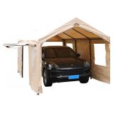 (73) SORARA Carport 10 x 20 ft Heavy Duty Canopy Garage Car Shelter with Windows and Sidewalls, Beige