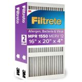 Filtrete 16x20x4 AC Furnace Air Filter, MPR 1550, MERV 12, Fits Lennox & Honeywell, Allergen, Electrostatic Air Cleaning Filter, 2-Pack (actual size 15.88x19.88x4.31 in)