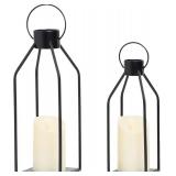 Modern Farmhouse Lantern Decor,16'' 12'' 2 Pcs Metal Candle Lanterns with Flameless Candles Black Decorative Lantern for Front Porch Covered Patio Dining Table Entryway Table Wedding Home Decor