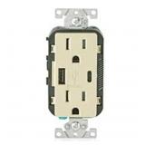 Leviton 15 Amp Decora Tamper-Resistant Duplex Outlet with Type A and C USB Charger, Ivory T5633-I