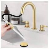 AKLFGN Double Handles 8 in. Widespread Bathroom Sink Faucet 3-Hole with Pull Out Sprayer with Pop-Up Drain in Brushed Gold