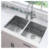 Glacier Bay Tight Radius 36 in. Undermount 50/50 Double Bowl 18 Gauge Stainless Steel Kitchen Sink with Accessories