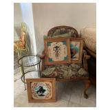 19th century paintings, MCM patio sets Italian Tole lamps, Burberry clothing |