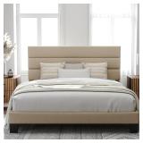 King bed frame made of high-quality metal and wood; heavy-duty support feet with plastic plugs to care for your floor; super sturdy and durable, supports up to 800 pounds Beige