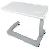 Medical Adjustable Overbed Exam Bedside Table with Wheels (Hospital and Home Use), New Tabletop, Light Gray