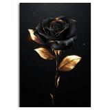 Black And Gold Shining Rose Wall Art Print Vintage Canvas Wall Art Wall Decor Aesthetic Modern Living Room Bathroom Decor Poster