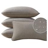 Sunbrella Decorative Outdoor Water Repellent Throw Pillows with Inserts, Set of 4, 20" x12" Pillows for Patio, Backyard, Bed, Couch, and Patio Furniture, Cast Shale