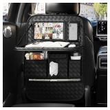 GMQ Back Seat Car Organizer 1 Pack,Backseat Organizer with Tray,Multifunctional Car Seat Back Storage Box with Foldable Tablet Holder (Black, Weave)