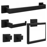 5pcs Bathroom Hardware Set, 16in Towel Bar Set, Including Square Towel Bar Square Towel Ring Toilet Paper Holder Towel Hooks, Set SUS304 Stainless Steel,... Color:Black