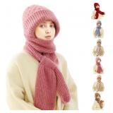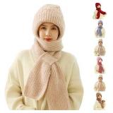 2026 New Integrated Ear Protection Windproof Cap Scarf, Winter Warm Knitting Thick Warm Ear Guard Hat Scarf for Women