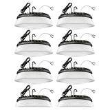 200W 8 Pack UFO LED High Bay Light with Reflector 28,000lm 5000K LED High Bay Lights AC110-277V 5' Cable with Plug Waterproof UFO Lights for Garage Shop Gym Factory