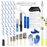 【Paint Roller Kit】-This paint supplies for painting walls set includes 1 paint roller extension pole2ft to 4ft,6 paint roller cover 9 Inch , 6 paint roller cover 4 Inch , 2 paint roller handle 9Inch & 4Inch, 5 Paint bruses of different sizes ,3 paint tray 9 Inch, 1 paint tray liner 9Inch,2 Rolls Painters Tape,1 stirring rod ,1 scraper,1 can openner and a pair of gloves,meeting all needs from from large - area painting to detailed handling.