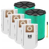 VF6000 5-Layer Pleated Replacement Filter Compatible with Ridgid 5-20 Gallon Wet Dry Vacuums WD5500 WD0671 WD6425 WD7000 WD1280 WD1851 WD1680 WD1956 RV2400A 1400RV RV2600B (2 Filters + 4 Bags)