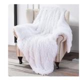 Extra Soft Faux Fur Throw Blanket with Warm Underside,50"x60",White