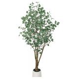 Tall Faux Ficus Tree with Black Planter, Exact Height Unmarked, Probably 6-7ft
