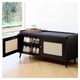 42" Round Dining Table for 4, Farmhouse Kitchen Table with Storage, Space Saving Circle Dinner Table, Rustic Wood Kitchen & Dining Room Tables with Metal Legs for Kitchen, Living Room, Dining Room