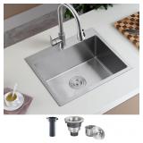 【Unbreakable Construction】This drop-in kitchen sink is constructed with premium stainless steel for durability and strength. It is anti-rust and anti-corrosion, very long-lasting in your busy kitchen