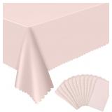 12 Pack Plastic Light Pink Tablecloth, 54 X 108Inch Party Table Covers Pink Scalloped Table Cloth for Rectangle Tables Disposable Tables Cover for Picnic Baby Shower Tea Party Wedding Bridal