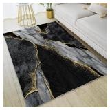 HUXJOKO Area Rug Abstract Black and Gold Marble Veins Home Decor Non-Slip Rugs Machine Washable Doormat Carpet Mat for Living Room Bedroom Kitchen Kindergarten Room Classroom,5' x 7'