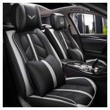 【Premium Leather Covers】This seat cover is made of premium breathable PU leather, 8mm thick sponge, cotton felt and non-slip bottom fabric, with exquisite workmanship, neat stitch and meticulous tailoring. Scratch-resistant, soft touch and easy to wash with wet cloth.