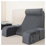 Vekkia Reading Pillow with Adjustable-Arms & Headrest – Multi-Firm Foam Backrest Cushion for Adults with Extra-Large Pockets for Reading, TV, Gaming & Work, Recovery on Bed & Floor, 19"(Grace Grey)