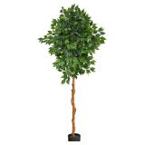 Elevate your home with a delicate and elegant Ficus Artificial Tree. Glossy ficus leaves stem from a thin natural looking light brown trunk and deliver a bold yet airy look.