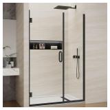 (44). Pivot Swing Shower Door, Adjustable Width 48" W x 74" H Semi-Frameless Shower Glass Door with 5/16 in (8mm) Clear SGCC Tempered Glass with Nano Easy-Clean Coating (Matte Black)